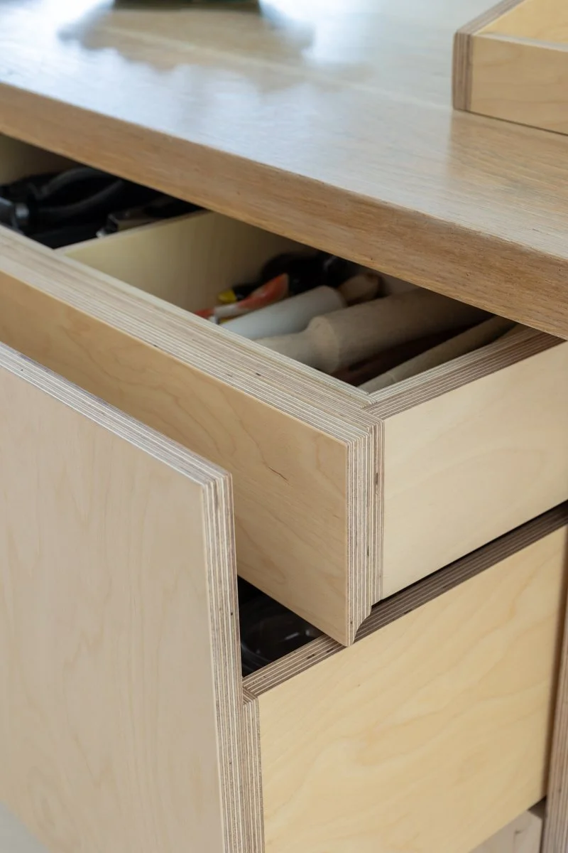 Obviously the main aim was to let the birch ply speak for itself - that natural oiled finish dominates, but as ever I’ve made sure to break up spaces with end grain and a few other finishes.